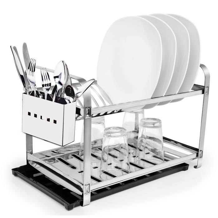 Escorredor de Louca 16 pratos com bandeja e porta talheres em aço inox