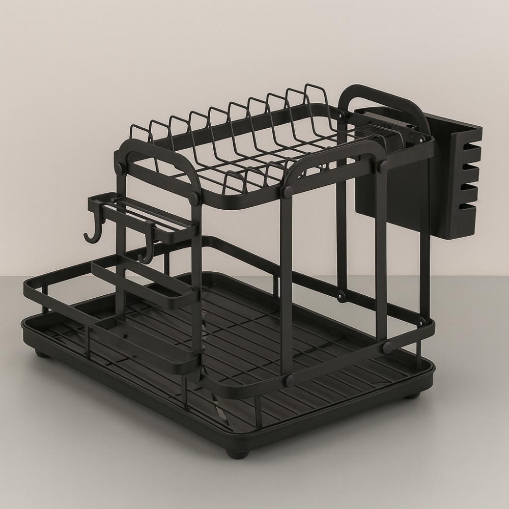 Compacto, funcional e com excelente aproveitamento vertical, o escorredor de louças Deend modelo D250325 é a escolha ideal para quem busca praticidade em cozinhas com pouco espaço. Sua estrutura em ferro com acabamento preto fosco garante resistência e durabilidade, enquanto os detalhes em plástico facilitam o uso no dia a dia. Com dois andares bem distribuídos, acomoda pratos, bowls e talheres com total organização. Com capacidade para até 9 pratos na parte superior e espaço adicional para bowls ou copos na base inferior, ele acompanha um suporte removível para talheres com duas divisórias e uma bandeja coletora que evita o acúmulo de água na pia. Seu design moderno se adapta a diferentes estilos de cozinha, entregando eficiência sem ocupar muito espaço. Características: Marca: Deend Modelo: D250325 Material: Estrutura em ferro com peças em plástico Capacidade superior: 9 pratos Capacidade inferior: 3 a 5 bowls ou copos Suporte de talheres: 1 unidade com 2 divisórias Bandeja coletora: Sim, removível Cor: Preto fosco Dimensões: 30 cm (altura) x 40 cm (comprimento) x 23 cm (largura) Peso: 1.35 kg Benefícios: Design compacto que aproveita o espaço vertical Estrutura resistente com excelente durabilidade Bandeja que evita respingos e mantém a pia seca Ideal para cozinhas pequenas ou bancadas reduzidas Organização prática para o dia a dia