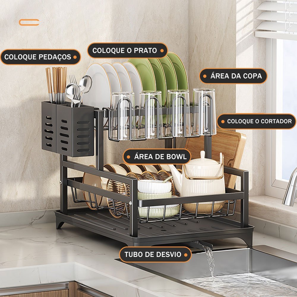 Escorredor De Louça 2 Em 1 Decoteam 2 Níveis E Ralo Ajustável 42x30x34 cm