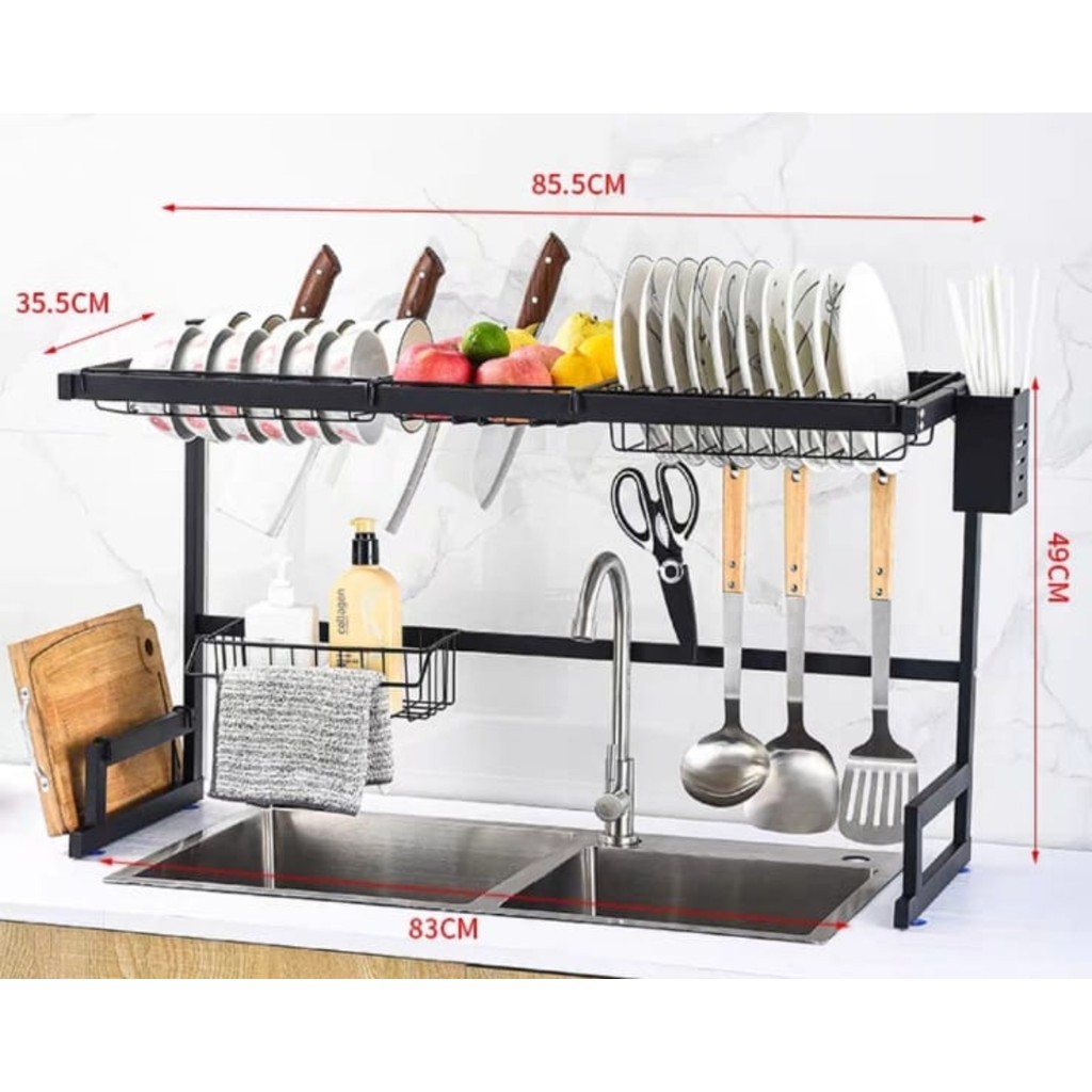 Escorredor De Louça 85cm Suspenso Preto Aço Inox Organizador Para Cozinha Pratos Talheres Escorredor Premium b