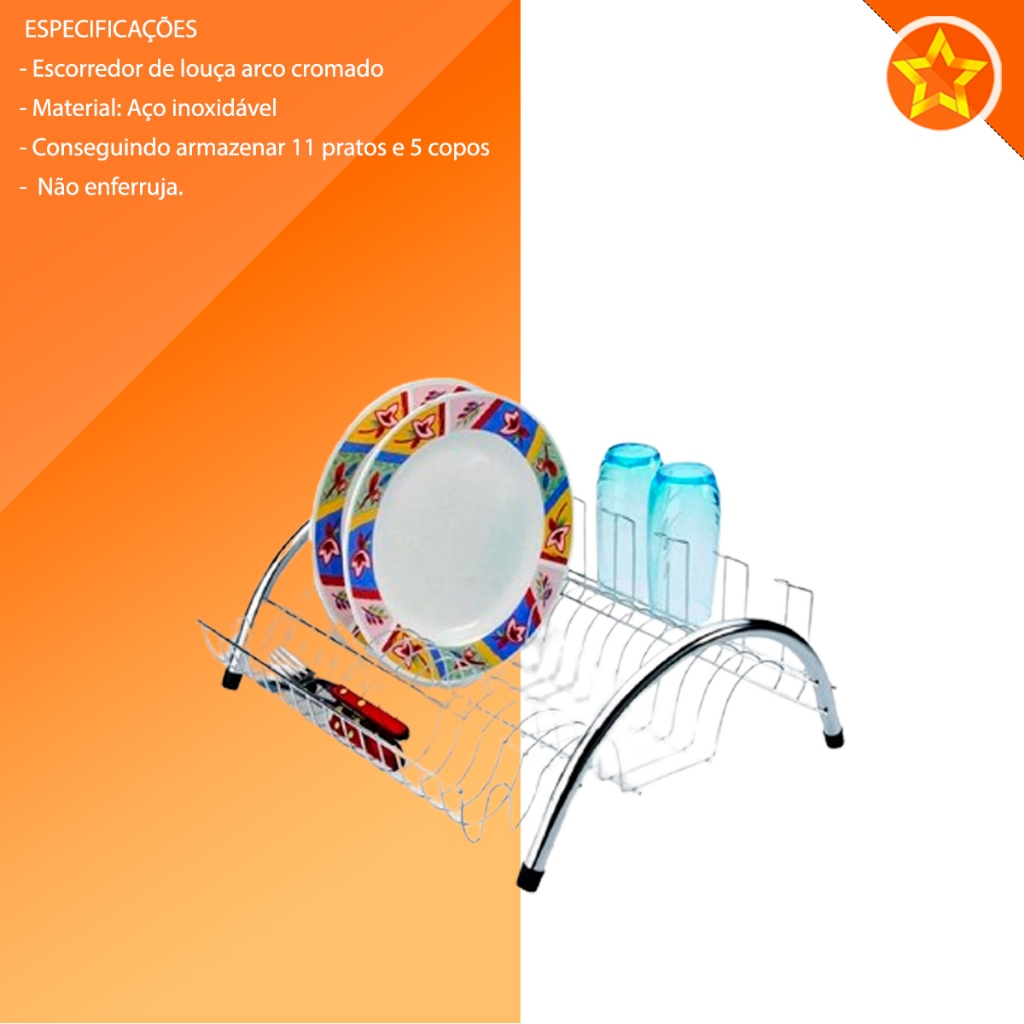 Escorredor de louça arco cromado madefer