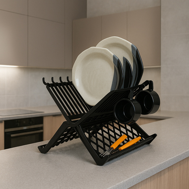 🍽️ Escorredor de Louças Dobrável com Porta-Copos – Praticidade e Organização para sua Cozinha O Escorredor Dobrável com Porta-Copos é a escolha ideal para quem busca funcionalidade, economia de espaço e design moderno na cozinha. Inteligente e versátil, ele mantém pratos, copos, talheres e utensílios sempre organizados e bem acomodados durante a secagem. Fabricado em plástico resistente de alta qualidade, possui estrutura firme e durável para o uso diário. Seu sistema dobrável permite guardá-lo facilmente quando não está em uso, liberando espaço na bancada e deixando o ambiente mais organizado. O porta-copos integrado oferece mais segurança para secar copos e taças, evitando quedas e quebras, enquanto o acabamento preto moderno adiciona um toque elegante e contemporâneo à cozinha. ✅ Principais Benefícios 🔄 Dobrável – economiza espaço quando não está em uso 🥛 Porta-copos integrado – mais segurança na secagem 🍽️ Alta capacidade – ideal para pratos, copos, talheres e utensílios 🖤 Design moderno – acabamento preto que combina com qualquer cozinha 💪 Material resistente – durável e fácil de limpar 🥬 Versátil – pode ser usado também para frutas e vegetais lavados 📦 Especificações Técnicas • Produto: Escorredor Dobrável com Porta-Copos • Material: Plástico resistente • Cor: Preto • Uso: Doméstico • Conteúdo da embalagem: 1 Escorredor Dobrável com Porta-Copos 🧼 Instruções de Uso e Limpeza ✔ Desdobre completamente antes de utilizar ✔ Posicione pratos, copos e utensílios nos suportes adequados ✔ Após o uso, limpe com pano úmido e detergente neutro ✔ Para guardar, pressione as laterais até ficar totalmente dobrado ✨ Mais organização, mais praticidade e mais estilo para sua cozinha! Garanta agora o Escorredor Dobrável com Porta-Copos e facilite sua rotina no dia a dia 🍽️
