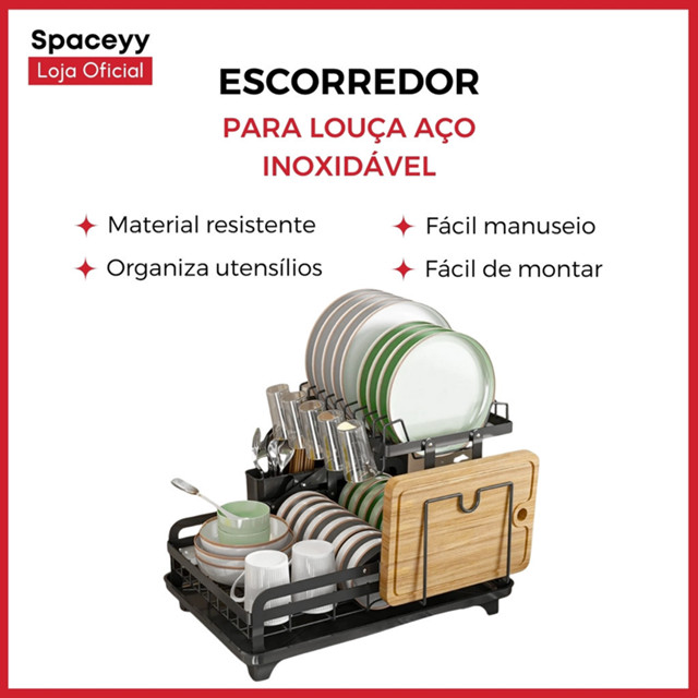 | Escorredor de Louças Rack Aço Carbono Organizador Preto | R$ 92,00 | 54% | 4.8/5 | 4.1 mil |