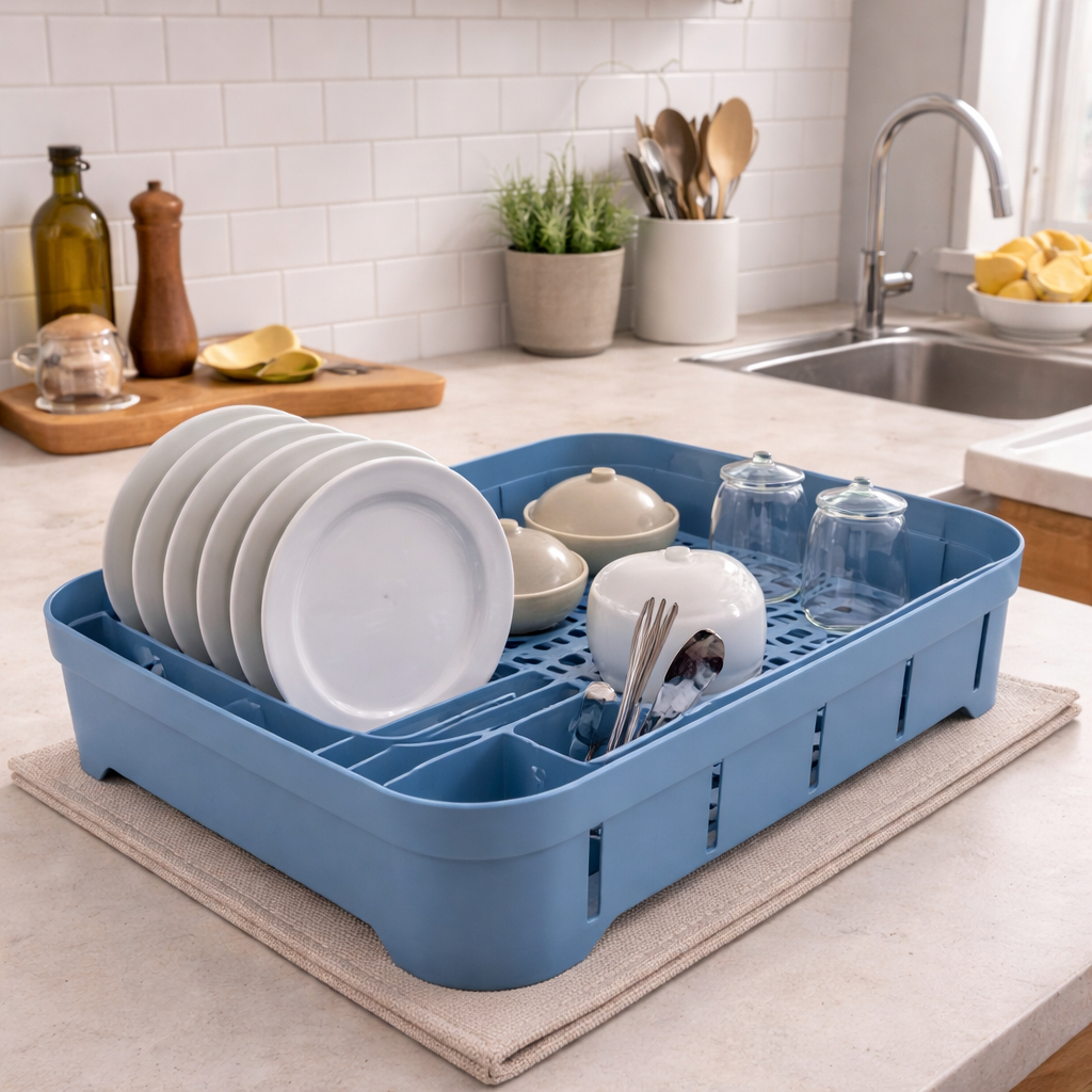 Escorredor de Louça – Organizador de Pia para Cozinha O Escorredor de Louça é ideal para manter a pia organizada e facilitar a secagem dos utensílios no dia a dia. Possui fundo com furos para escoamento, permitindo que a água escorra com eficiência, evitando acúmulo e mantendo a bancada mais seca. Com design funcional, oferece 3 divisórias para talheres, espaço para copos e outros utensílios, além de capacidade para até 10 pratos ou tampas, garantindo organização prática e otimização de espaço. Características: - Fundo com furos para escoamento - 3 divisórias para talheres - Espaço para copos e utensílios diversos - Capacidade para 10 pratos ou tampas - Ideal para uso diário na cozinha Um item prático e funcional para tornar a rotina na cozinha mais organizada. Santa Rita Utilidades