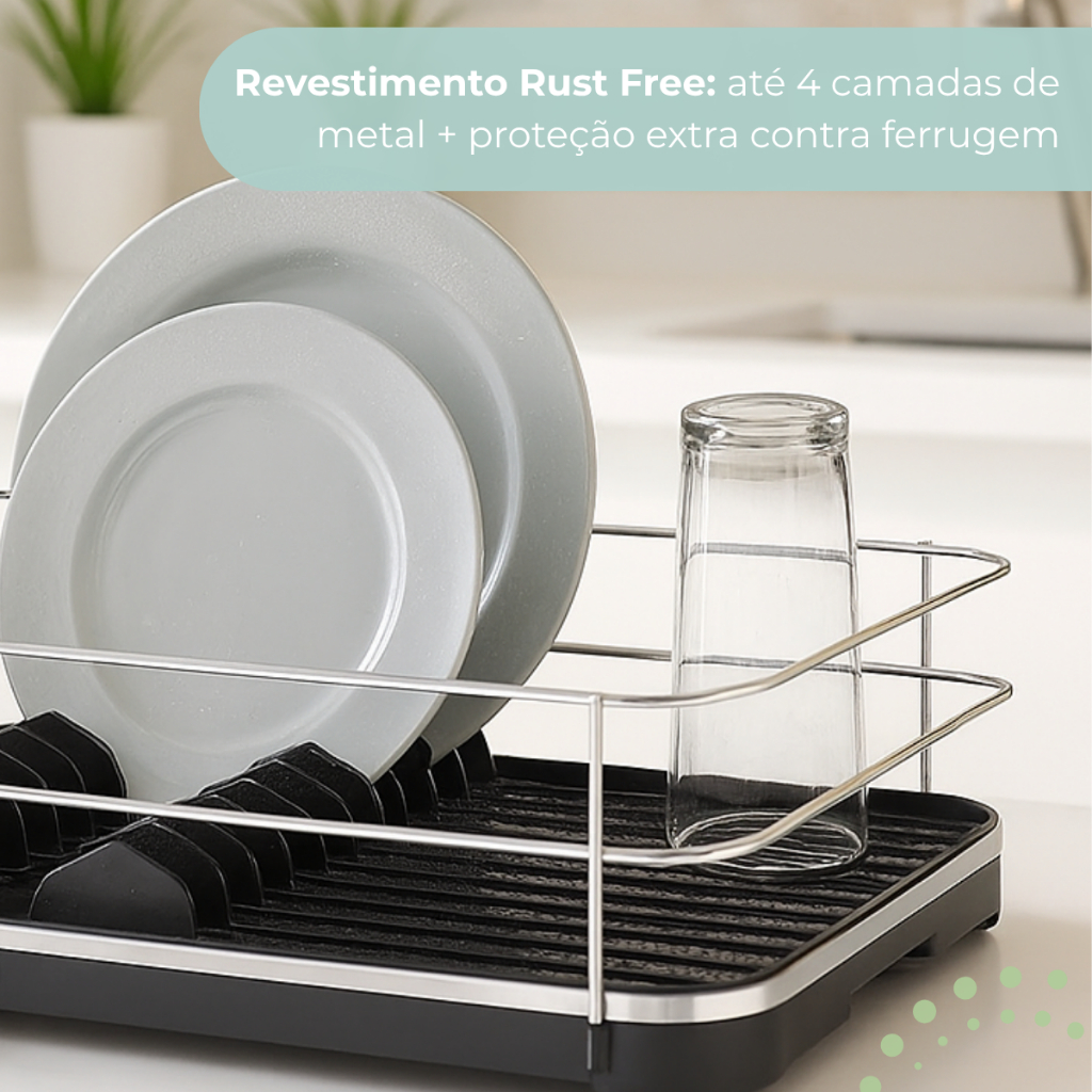 Escorredor De Louça Cozinha Prato Porta Talheres Pia 11 Pratos Aço Cromado Future Escoamento Água