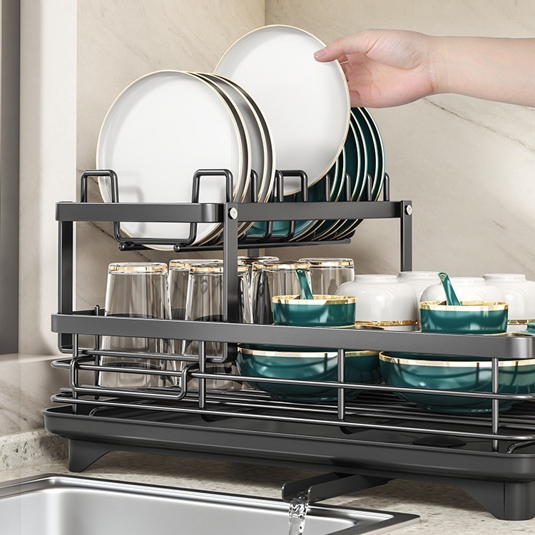 Escorredor de Louça Duplo Andares Aço Carbono Prateleira De Cozinha Com Porta Talheres Yesop