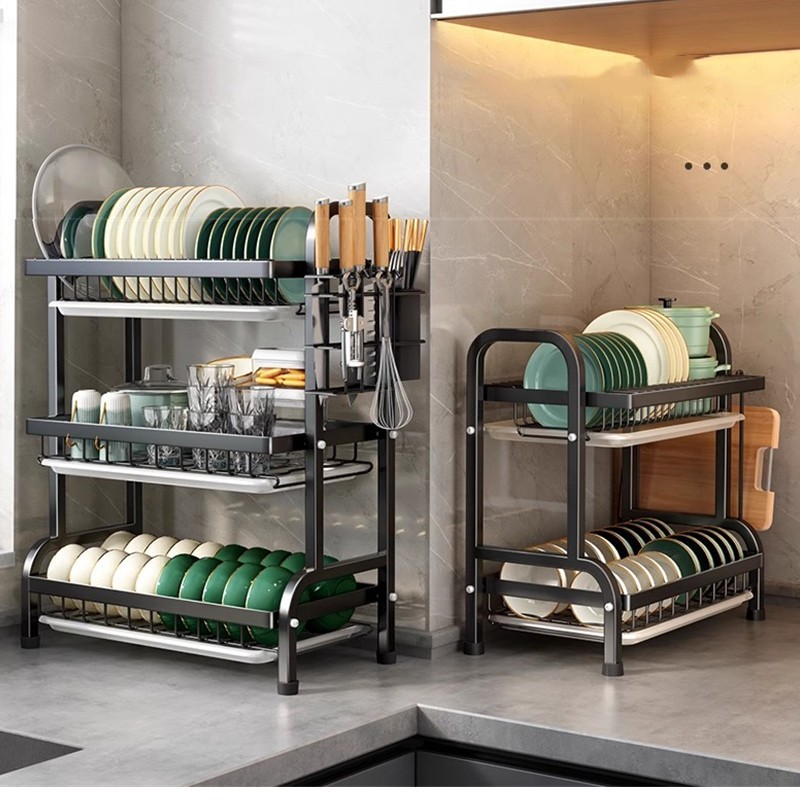 Escorredor de Louça Duplo Multifuncional Suporte para Pratos, Talheres e Tábua de Corte