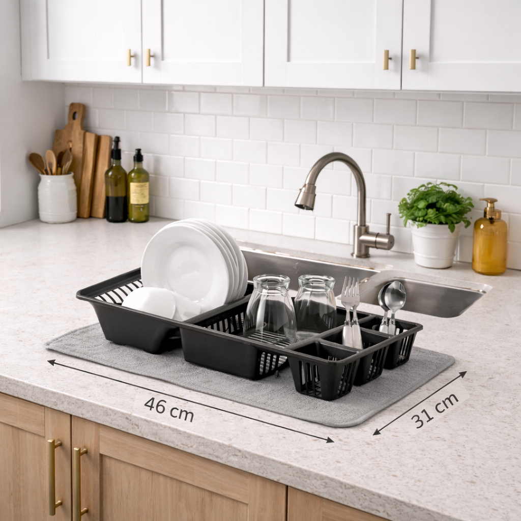 Escorredor de Louça Grande com Porta Talheres e Copos – Organizador para Pia Resistente e Moderno
