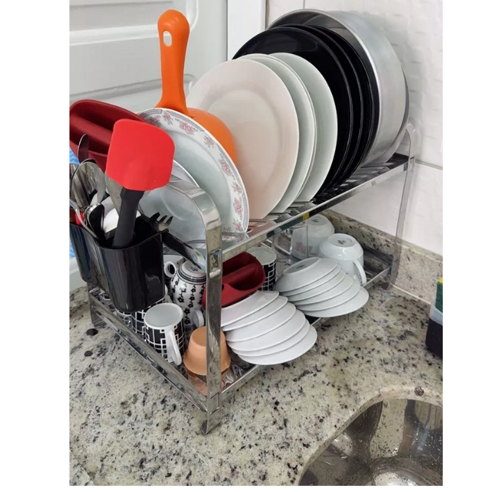 Escorredor de Louça inox para 16 pratos com porta talher plástico