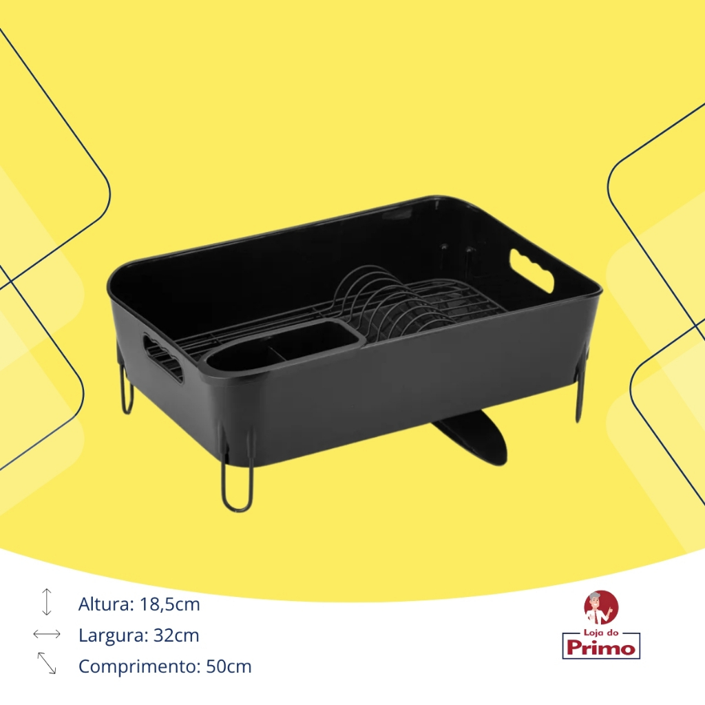 Escorredor de Louça com Suporte para Talheres Linha Deluxe Preto Eleve a organização da sua cozinha com o Escorredor de Louça da Linha Deluxe em tom preto, uma adição sofisticada e funcional ao seu espaço. Com dimensões de 50 cm de comprimento, 32 cm de largura e 18,5 cm de altura, este escorredor oferece não apenas eficiência na secagem, mas também um toque de elegância à sua bancada. Principais Características: - Design Moderno e Premium: Acabamento preto que confere um visual moderno e luxuoso à sua cozinha. Design elegante da Linha Deluxe para um toque de sofisticação. - Espaço Amplo e Funcional: Dimensões generosas que proporcionam espaço suficiente para a secagem de pratos, copos e utensílios. Suporte dedicado para talheres, mantendo-os organizados e de fácil acesso. - Construção Durável: Fabricado com materiais de alta qualidade para garantir durabilidade e resistência. Estrutura robusta que suporta o peso das louças de forma segura. - Suporte Inteligente para Talheres: Compartimento específico para talheres integrado ao escorredor, economizando espaço e facilitando a organização. Evita que os talheres fiquem misturados, garantindo uma secagem adequada. - Escoamento Eficiente: Design com inclinação para facilitar o escoamento da água diretamente para a pia. Evita o acúmulo de água, mantendo sua bancada seca e limpa. - Fácil Limpeza e Manutenção: Superfície de fácil limpeza, garantindo a higiene do escorredor. Material resistente a manchas para manter o preto impecável por mais tempo. - Adaptação Versátil: Adequado para cozinhas de diferentes tamanhos e estilos. Combina funcionalidade e estética para uma experiência de cozinha aprimorada. Otimize sua rotina na cozinha com o Escorredor de Louça com Suporte para Talheres Linha Deluxe Preto. Uma peça que une praticidade, elegância e durabilidade, tornando a secagem de louças uma tarefa eficiente e estilizada