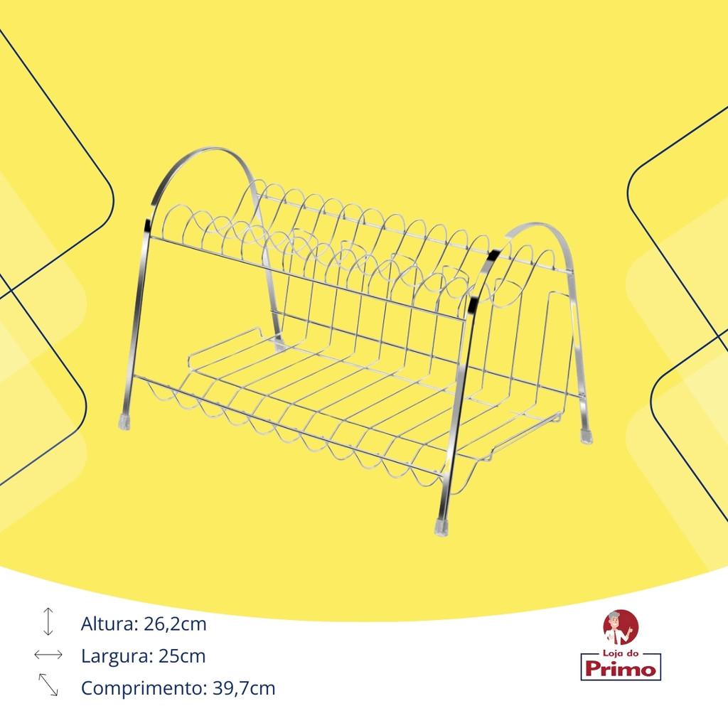 Escorredor De Louça Organizador De Pia Max Duplo Cromado 14 Pratos Porta Copos Talheres Arthi