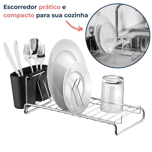| Escorredor De Louça Prato Para Pia Cozinha Compacto Com Porta Talheres este produto | R$ 79,90 | 28% | 4.9/5 | 1 |