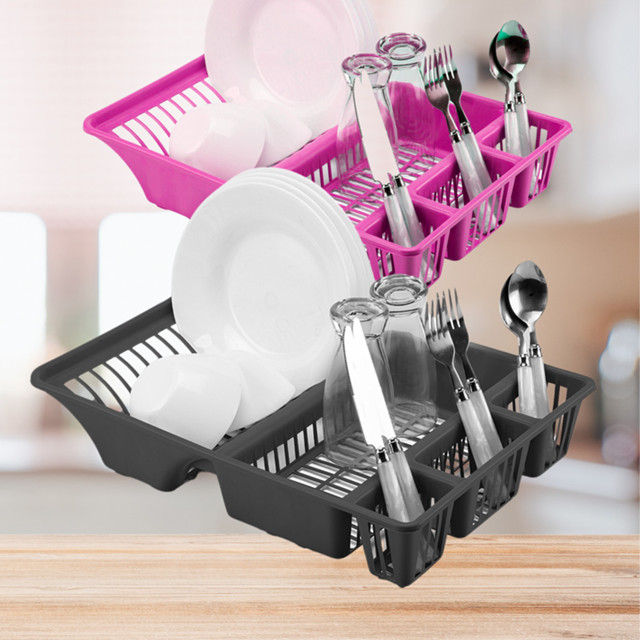Escorredor de Louças 12 Pratos Cozinha Plástico Preto Escorredor Louça Copos Talheres