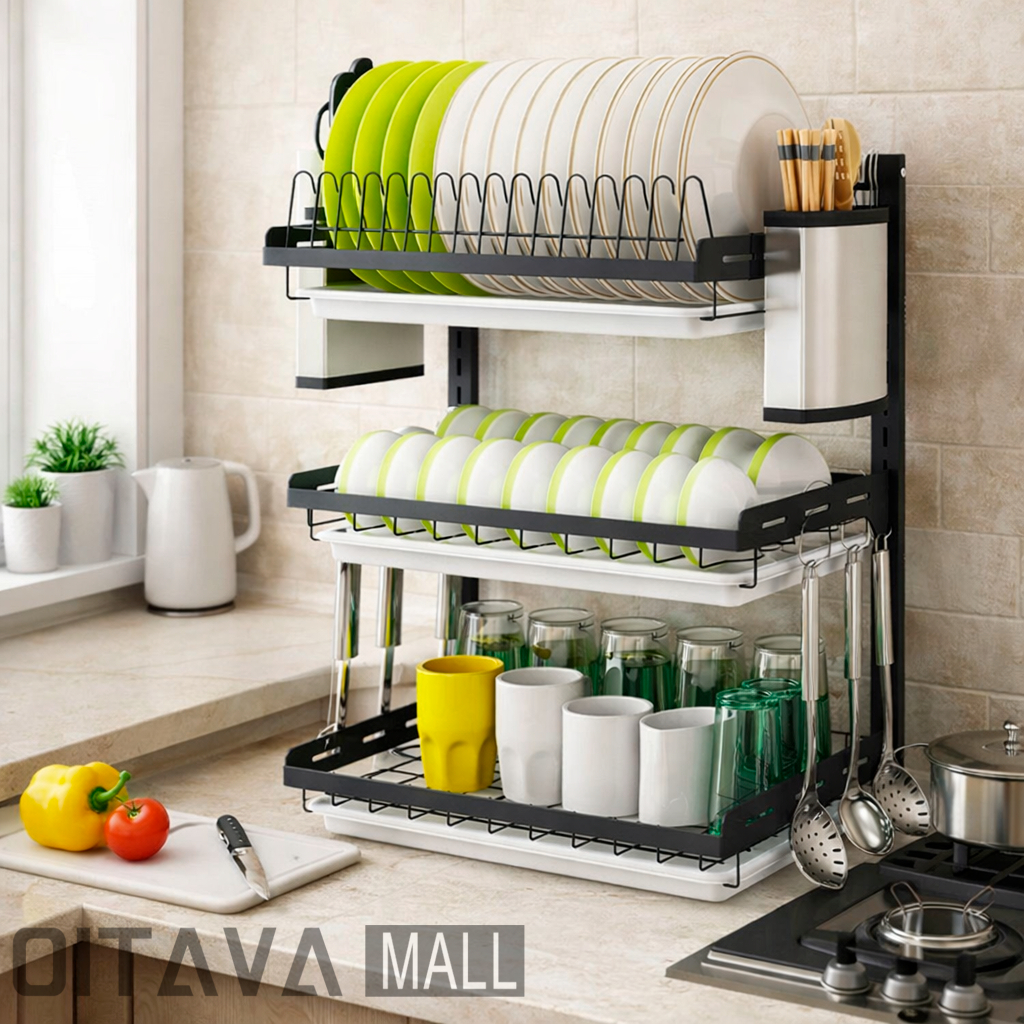 Escorredor De Louças 3 Andar Aço Inoxidável Organizador Moderno Com Porta Talher e Bandeja
