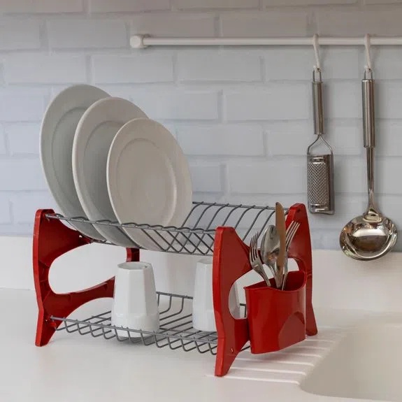 Escorredor de louças duplo para cozinha com porta talheres