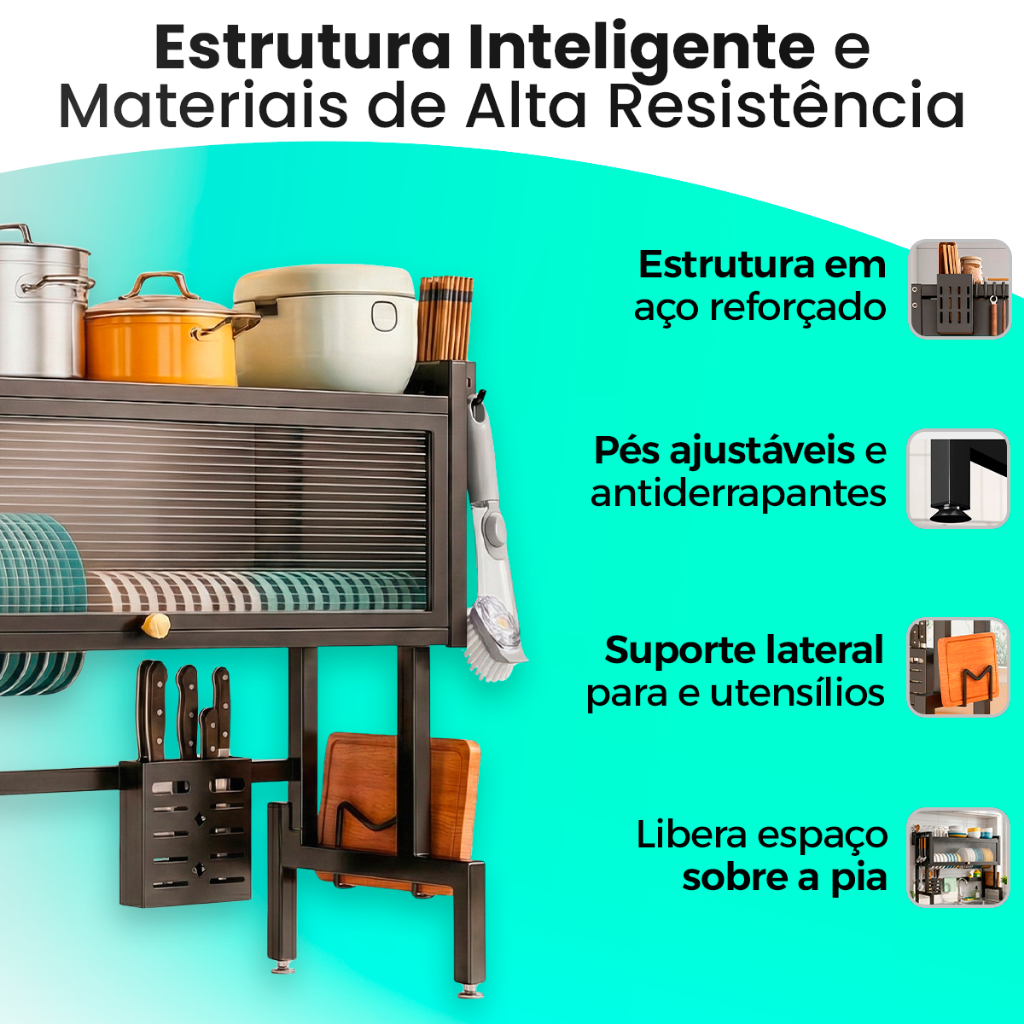 ESCORREDOR DE LOUÇAS GRANDE A Prateleira Suspensa para Pia é a solução ideal para quem deseja organizar a cozinha com praticidade, economia de espaço e visual moderno. Com design funcional e estrutura robusta, ela é perfeita para manter pratos, copos, talheres e utensílios sempre organizados, enquanto a água escorre diretamente para a pia, mantendo a bancada seca e limpa. Fabricada com materiais resistentes e de alta qualidade, essa prateleira combina durabilidade, eficiência e elegância, sendo ideal para cozinhas pequenas ou para quem busca otimizar cada centímetro do ambiente. Informações do Produto: - Material: Aço Carbono (estrutura principal) + ABS (acessórios) -Cor: Preto -Dimensões: 79 cm (largura) x 77 cm (altura) x 30 cm (profundidade) -Estrutura resistente: Alta durabilidade e resistência à ferrugem -Instalação prática: Uso suspenso sobre a pia -Design funcional: Mantém a louça organizada e a cozinha mais limpa Brinde: Escova para Limpeza Escova prática e funcional para remover sujeiras difíceis de panelas, pratos e talheres, sem contato direto com o sabão. Também pode ser utilizada na limpeza de locais de difícil acesso, como cantos e rejuntes de azulejos. 3 Unidades de Panos para Cozinha Conjunto com 3 panos para cozinha, ideais para limpeza e secagem de louças, bancadas e utensílios em geral. Produzidos com material de alta qualidade, oferecem excelente absorção, resistência e praticidade para o uso diário. (100% Poliéster Microfibra 40 x 40 cm