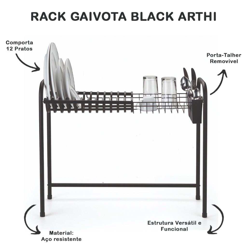 Escorredor de Louças Gaivota Black 2630 - Arthi