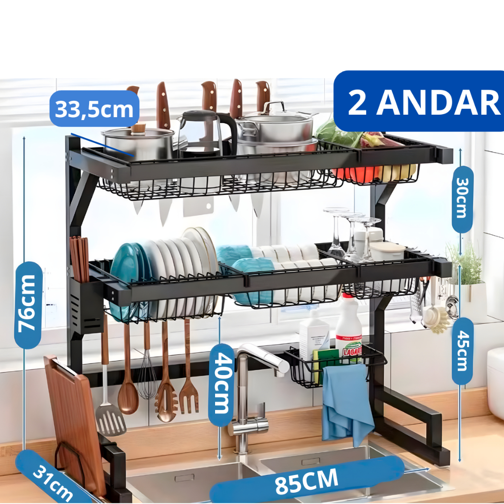 | Escorredor Organizador de Louças 2 andar 3 andar Preto Aço Inoxidáv... | R$ 96,80 | 49% | 4.8/5 | 164 |
