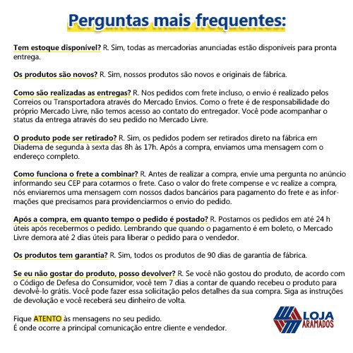 Vendido pela loja Loja_Aramados e 3 produtos catalogados aqui no SuperOfertas Brasil. Esta loja ocupa a 94.059ª colocação no ranking de lojas por volume total de vendas registradas (entre 137.370 lojas).