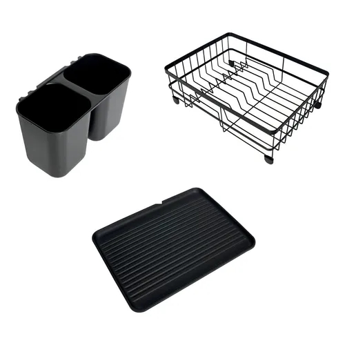 Escorredor De Louças Pratos Preto Fosco 9 Pratos Com Bandeja
