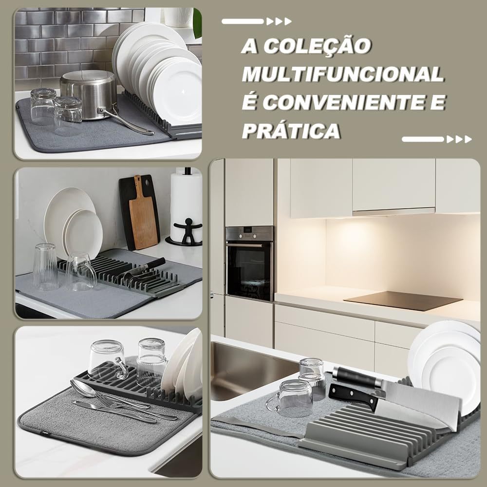 Escorredor de Louças UDry com Tapete de Microfibra | Antiderrapante – Compacto e Durável - SQ7737