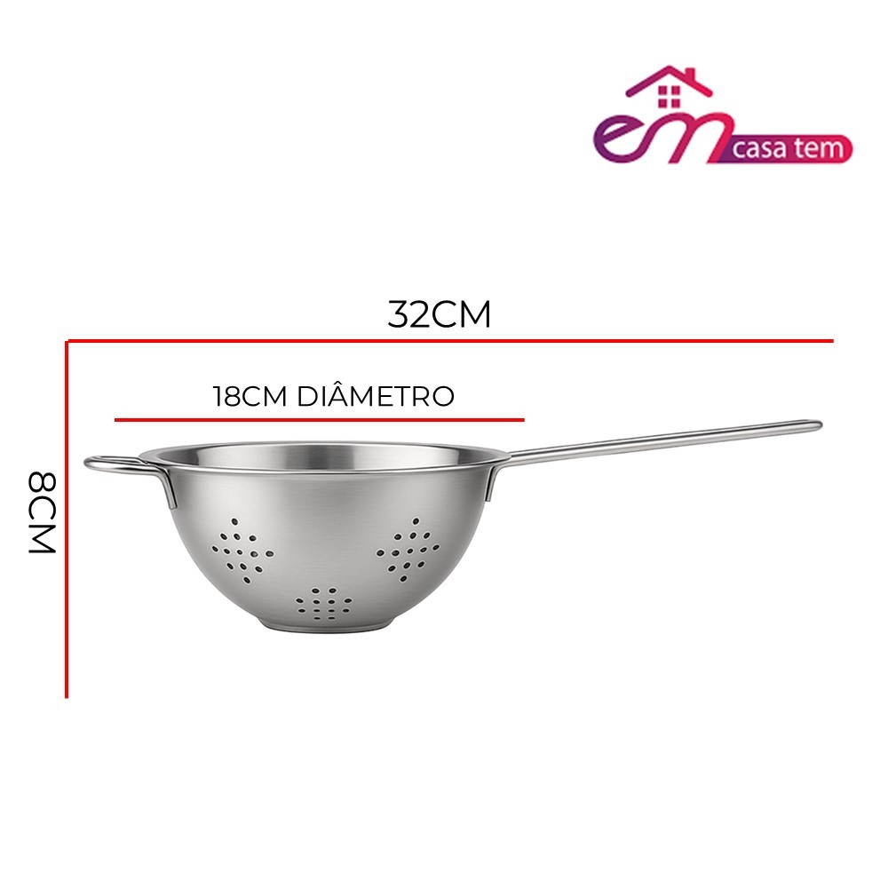 Escorredor de Massas com Cabo de Inox 18cm Em Casa Tem