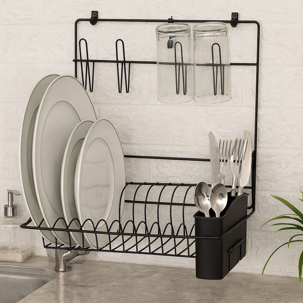 Escorredor De Prato e Copo Multiuso Dobrável De Parede Preto