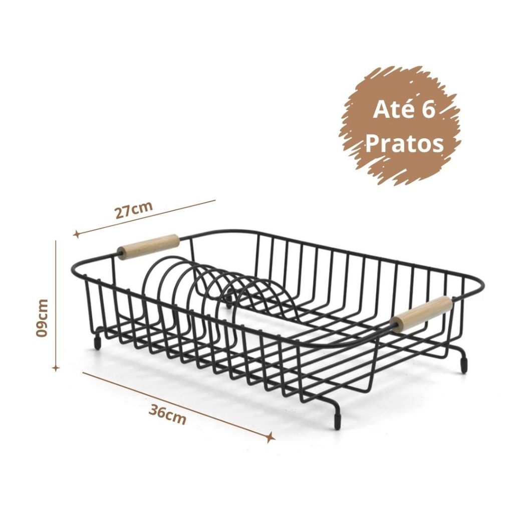 Escorredor de Pratos Preto Em Ferro e Madeira Design Moderno Funcional