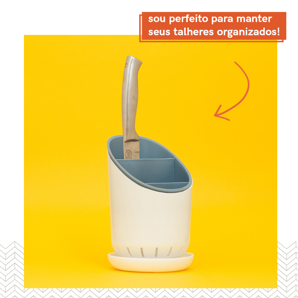 Escorredor E Organizador de Talheres de Plástico Azul Oikos