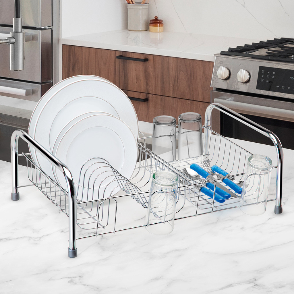 Escorredor Louça Aço Cromado Máxximo 10 Pratos 8 Copos Antiferrugem Organização Talher Cozinha Arthi