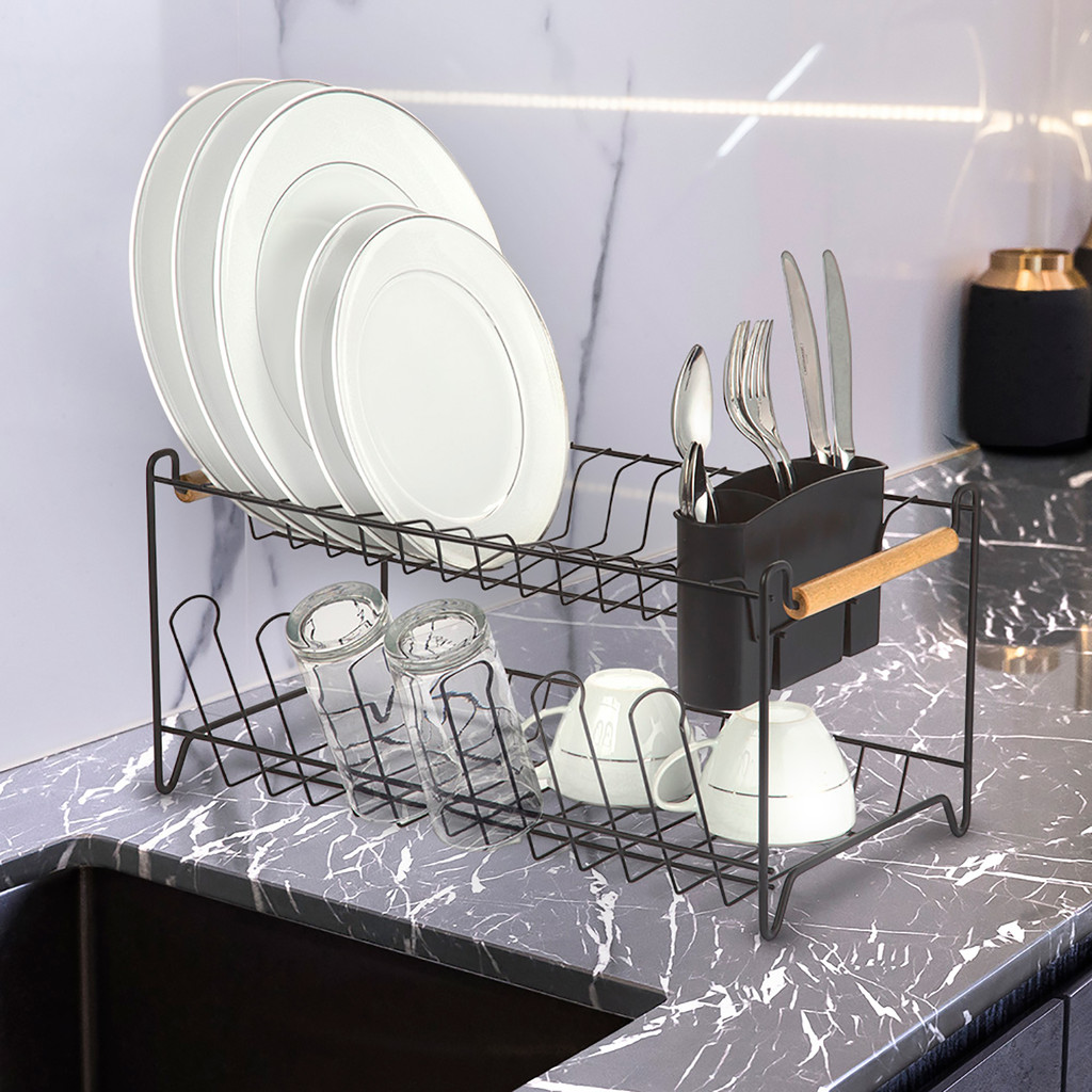 Escorredor Louça Duplo Pia Aço Eco Design Preto Organização Cozinha Arthi