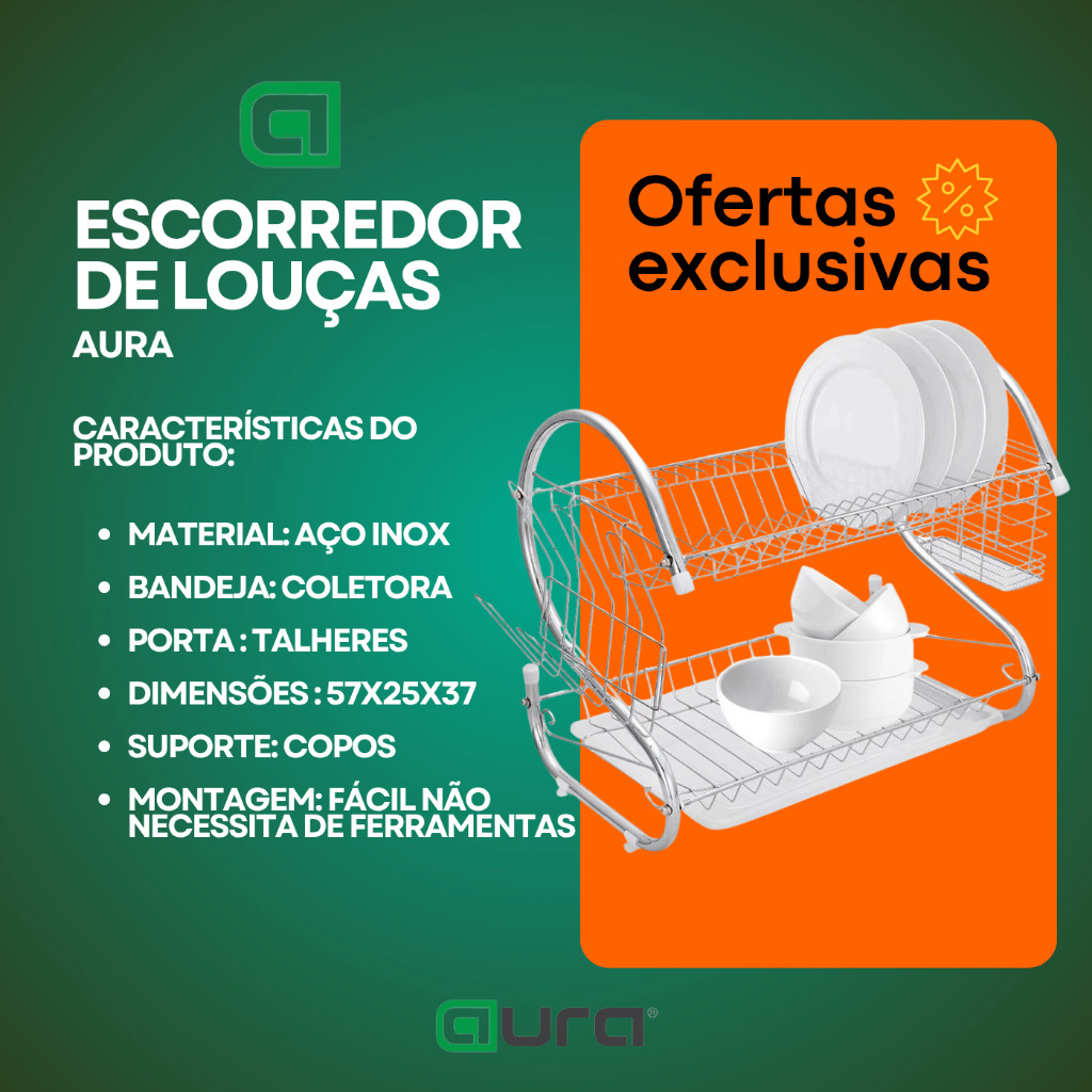 Escorredor de Louças em Aço Inox – 2 Andares com Bandeja Coletora Mantenha sua pia organizada e sem acúmulo de água com o Escorredor de Louças em Aço Inox de 2 andares. Funcional e resistente, ele oferece espaço amplo para pratos, copos, talheres, travessas e até panelas, garantindo praticidade no seu dia a dia. Destaques do Produto: Estrutura em aço inox, garantindo durabilidade e resistência à corrosão. Dois andares, ideal para otimizar espaço e organizar diferentes tipos de louças. Porta-talheres vazado removível, facilitando a higienização. Suporte removível para copos, podendo ser utilizado também para tábua de carne. Bandeja coletora plástica na parte inferior, que evita que a água escorra para a pia. Pés antiderrapantes, proporcionando mais estabilidade. Ótimo para escorrer louças maiores como travessas e panelas. Modelo: Escorredor de Louça Aço 2 Andares Material: Aço Inox Conteúdo da Embalagem: 1 Escorredor de Louça (com acessórios conforme descrito)