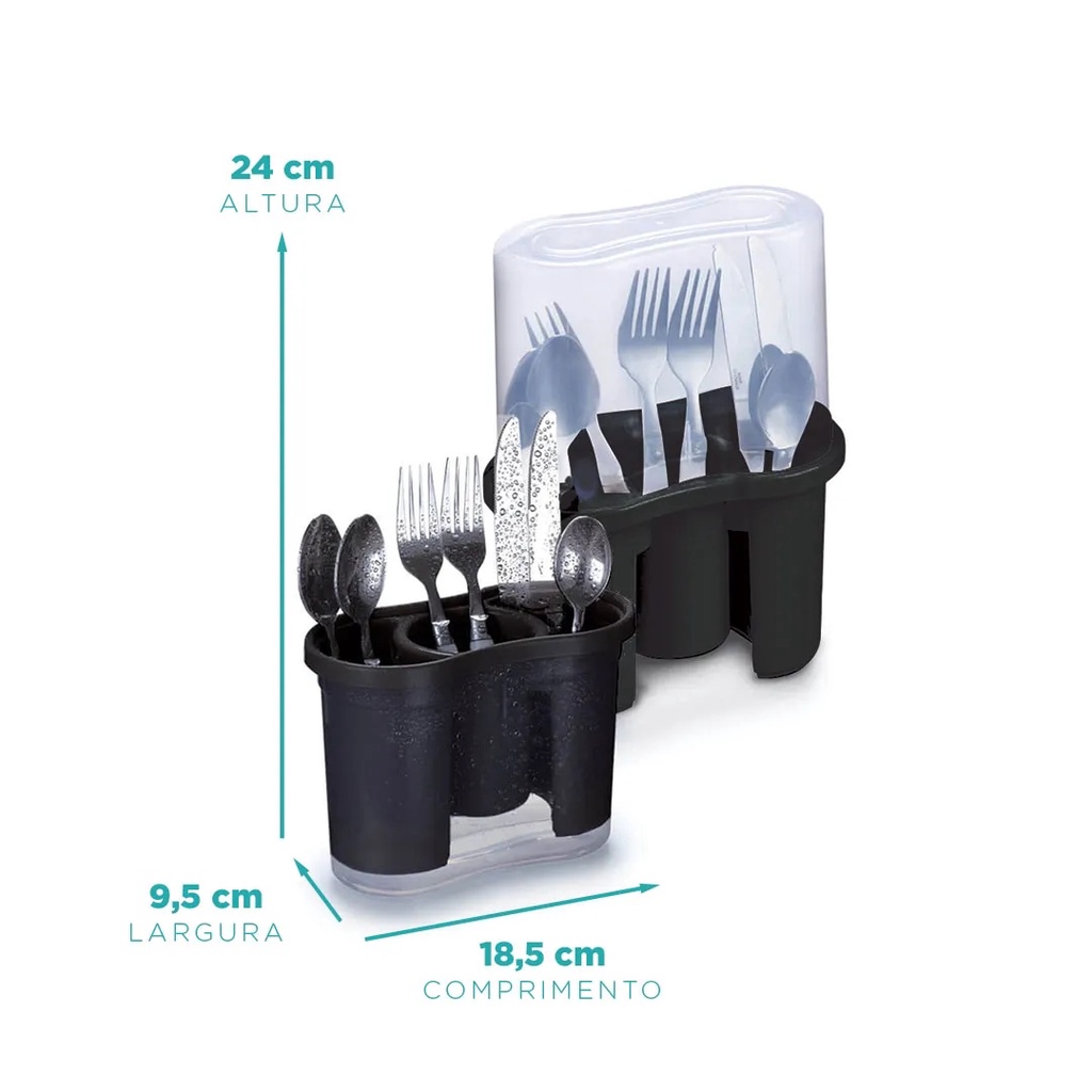 Escorredor Porta Talheres Com Tampa Escorre e Guarda 3 Divisórias Nitron