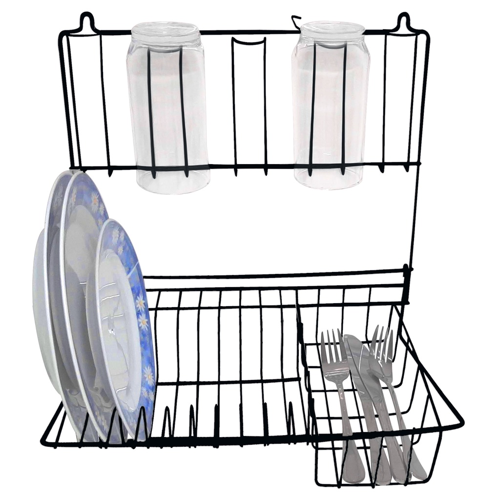 Escorredor Pratos Parede dobravel Resistente 10 Pratos 5 Copos E Talheres Aço Preto eletrostática