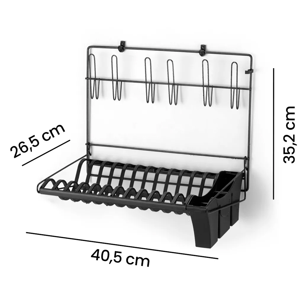 Escorredor Suspenso Cook Home Não Enferruja Dobrável Pratos Copos Parede Arthi Preto
