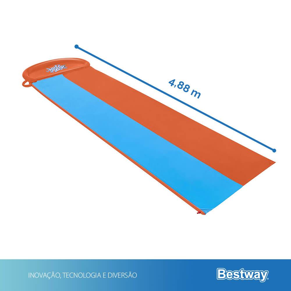 Você está comprando um produto Bestway original, da Bestway Store, sua loja oficial no Brasil! Quem somos: Há mais de 28 anos, a Bestway foi fundada com uma visão clara: criar diversão e experiências memoráveis para todos por meio dos produtos e serviços que oferecemos. Estamos presentes em todo o MUNDO, incluindo os Estados Unidos, França, Itália, Alemanha, Austrália, China e em mais de 120 PAÍSES, com a operação de seis fábricas próprias. Continuamos comprometidos com a qualidade e a inovação em todos os nossos produtos, mantendo-nos constantemente atualizados e acompanhando o que há de novo. >>> Aproximadamente 1 dentre 50 pessoas em todo o mundo possui um produto Bestway! Com o Escorregador Aquático Duplo H2OGO! de 4,88 metros. Projetado para crianças a partir de 3 anos, ele promete muitas horas de diversão. Visualize a empolgação dos seus filhos disputando em duas rampas lado a lado com os amigos! O H2OGO! É ideal para criar competições animadas e manter a criançada ocupada e feliz durante todo o verão. A sensação de deslizar atinge um novo patamar com as pistas de PVC UltraSlick. Criadas especialmente para aumentar ao máximo o escorregamento e reduzir o atrito, essas pistas asseguram uma descida veloz e eletrizante até o final. O material inovador resulta em uma superfície tão lisa que a resistência é quase nula! Para que a brincadeira continue sem interrupções, o escorrega possui jatos d'água SplashBoost embutidos. Posicionados de forma inteligente, eles molham as pistas de maneira uniforme e eficaz, mantendo-as sempre prontas para mais escorregões e respingos. E para finalizar cada aventura, uma pequena piscina com água acumulada garante um mergulho revigorante e divertido. As crianças vão adorar a sensação de chegar com um grande splash! E para os pais, a ótima notícia: a montagem é extremamente simples e não exige nenhuma ferramenta! É só conectar o adaptador a uma mangueira de jardim e pronto! Em poucos instantes, a diversão estará liberada. Especificações: - Tamanho: 4,88m X 1,38m - 4,88 metros de pura diversão aquática. - Duas pistas para corridas emocionantes e interação em grupo. - Piscina de água na linha de chegada para um mergulho refrescante. - Borrifadores de água SplashBoost integrados para manter as pistas sempre escorregadias. - Pistas de PVC UltraSlick para um deslizamento mais rápido e suave. - Válvula de drenagem para facilitar o esvaziamento. - Instalação simples e rápida, sem necessidade de ferramentas. Conteúdo: - 1 Escorrega Aquático Duplo H2OGO! - 1 Remendo de reparação Sugestão de jogo: Realize uma competição, que chegar primeiro ganha; ou Monte dois times e cronometre o tempo, a equipe que somar o menor tempo ganha.