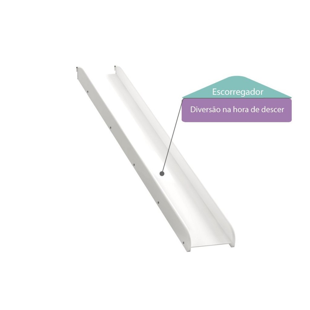 Leve diversão ao quarto das crianças com este lindo escorregador. Produto produzido em madeira maciça e mdf e pintura em laca branco. Pura diversão para o quarto infantil do seu filho. Indicado para os modelos: Beliche Montessoriano Noopy e Cama Alta Noopy (vendidas separadamente). Peso (kg): 9 Garantia: 06 Meses Altura (cm): 9 Acabamento: Pintura Largura (cm): 167 Profundidade (cm): 34 Escala de Brilho: Semi-Fosco Origem do Produto: Nacional Ambiente Principal: Quarto Infantil Fabricação Própria: Sim Material Principal: Madeira Maciça Marca: Casatema Tonalidade: Branco Cor do Produto: Branco Itens Inclusos: 1 Kit Escorrega, Kit Ferragens e Manual de Montagem Cor Predominante: Branco Linha ou Coleção: Noopy Quantidade de Gavetas: Não Possui