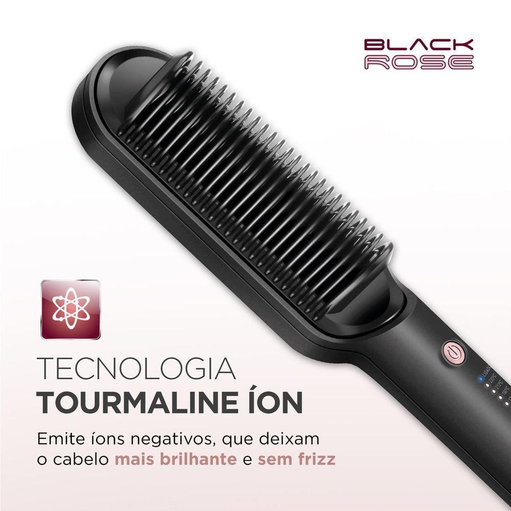 Escova Alisadora Black Rose Mondial Preto/Rose EA-07 Bivolt
