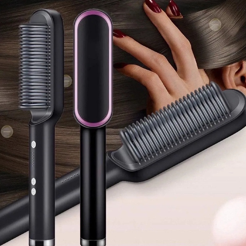 Escova Alisadora Secadora Seca Alisa E Modela Cabelo Comb,Hidrata,Modela,Alinha e Anti-Frizz Preto