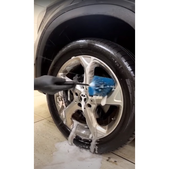 Escova Automotiva Furo De Rodas Limpeza Detailer Azul Grande
