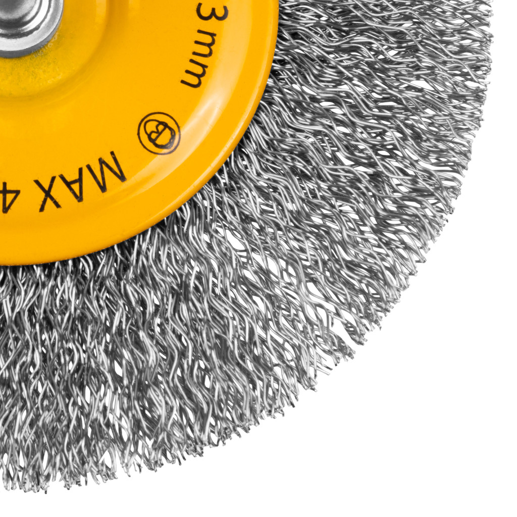ESCOVA CIRCULAR 100 MM, COM HASTE DE 1/4 6 MM, FIOS ONDULADO INOX DE 0,3 MM/DENZEL