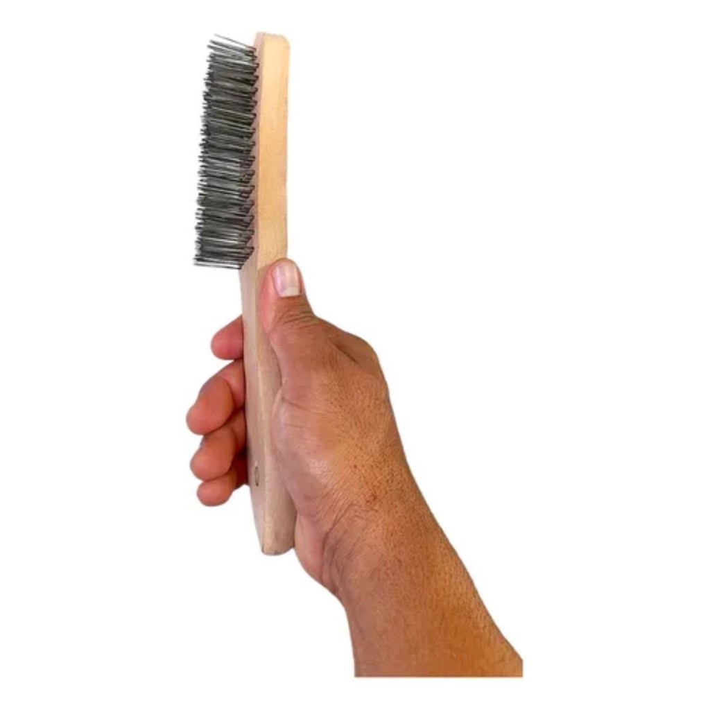 A Escova de Aço Fertak com cabo de madeira e 6 fileiras de cerdas é a solução ideal para limpeza pesada, remoção de ferrugem, tinta e resíduos em diversas superfícies. Fabricada com cerdas de aço de alta resistência, oferece durabilidade e eficiência no uso. O cabo de madeira ergonômico garante conforto e firmeza ao manusear, mesmo em tarefas prolongadas. Uma ferramenta indispensável para manutenção, construção e atividades industriais. ESCOVA DE AÇO CABO MADEIRA 6F FERTAK