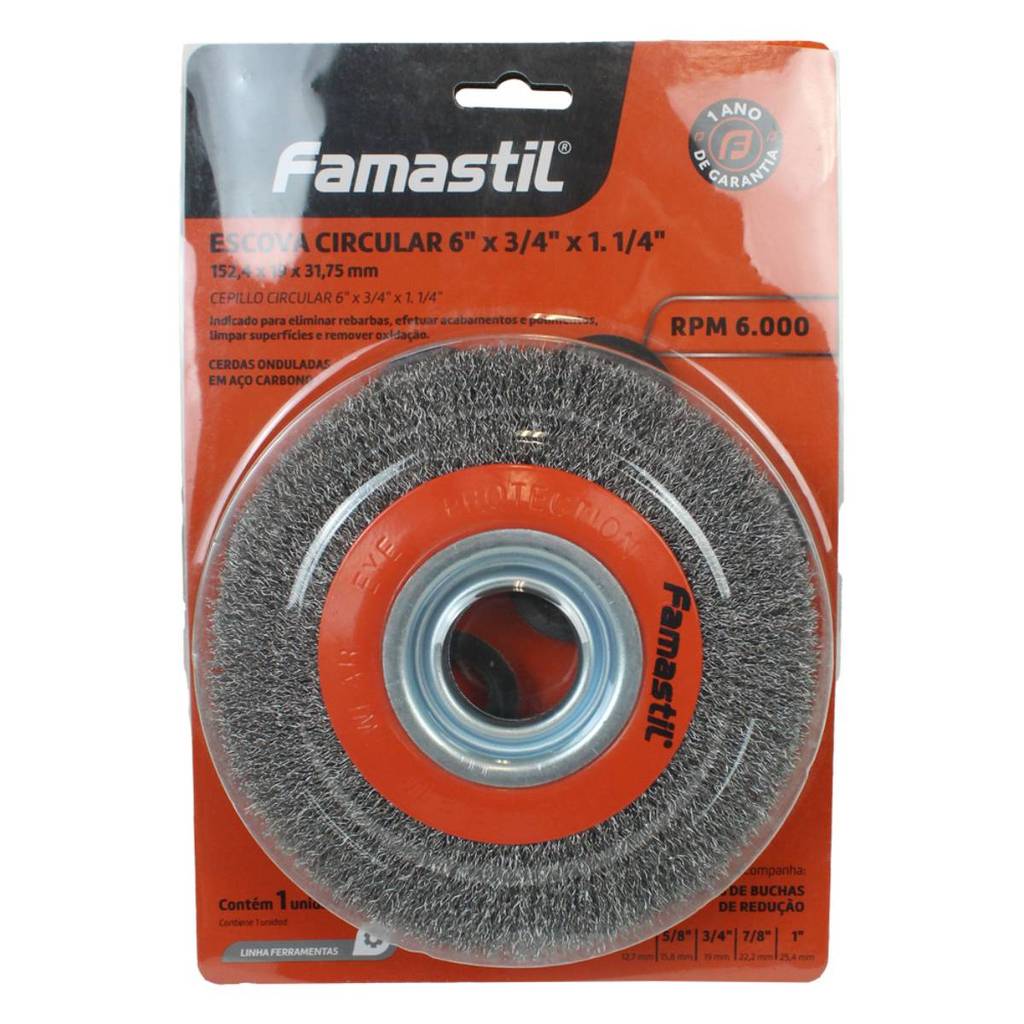 Escova de Aço Circular Famastil 6” com Furo 1.1/4” — Para Limpeza e Desbaste de Metais