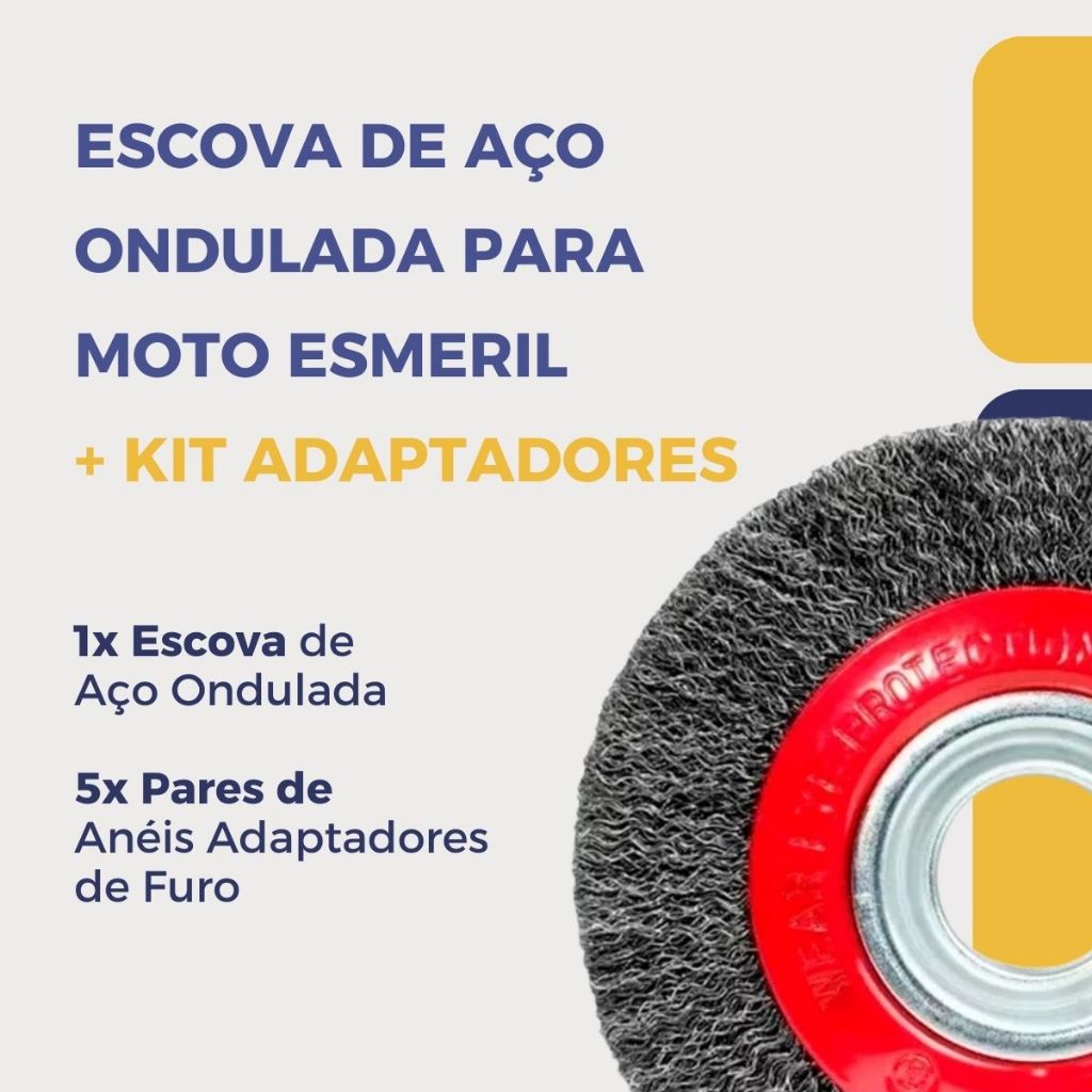 ⚙️ ESCOVA DE AÇO ONDULADA PARA MOTO ESMERIL + KIT ADAPTADORES ⚙️ Procurando uma ferramenta versátil e potente para limpar, polir e dar acabamento em peças de metal? Esta Escova de Aço Ondulada é o acessório indispensável para o seu moto esmeril, projetada para entregar resultados profissionais em qualquer tarefa. ✨ PRINCIPAIS BENEFÍCIOS: • MÁXIMA COMPATIBILIDADE (KIT UNIVERSAL): Diga adeus aos problemas de encaixe! A escova acompanha um kit completo com 5 pares de anéis adaptadores (1/2", 5/8", 3/4", 7/8" e 1"), garantindo a compatibilidade com praticamente todos os eixos de moto esmeril do mercado. • LIMPEZA EFICIENTE E ACABAMENTO UNIFORME: Os filamentos ondulados de 0,5 mm são perfeitos para uma limpeza robusta, mas sem agredir excessivamente a superfície. Eles se moldam ao contorno da peça, removendo impurezas de forma rápida e uniforme. • ALTA PERFORMANCE E SEGURANÇA: Projetada para suportar uma rotação de até 6.000 RPM, esta escova oferece um desempenho poderoso e seguro, permitindo que você trabalhe com agilidade em projetos que exigem alta velocidade. • CONSTRUÇÃO ROBUSTA E DURÁVEL: Fabricada em aço de alta qualidade, foi feita para durar e resistir a trabalhos pesados de remoção e limpeza, oferecendo um excelente custo-benefício. 🔧 IDEAL PARA DIVERSAS TAREFAS: • Remoção Pesada: Perfeita para retirar ferrugem, corrosão, tintas antigas e vernizes de superfícies metálicas. • Acabamento Pós-Solda: Limpa cordões de solda e remove respingos com facilidade. • Remoção de Rebarbas: Ótima para dar acabamento em peças recém-cortadas, eliminando arestas e rebarbas. • Preparação de Superfícies: Deixa o material pronto para pintura, soldagem ou outros tratamentos. 📄 FICHA TÉCNICA: • Produto: Escova de Aço Ondulada para Moto Esmeril • Filamentos: Ondulados com espessura de 0,5 mm • Rotação Máxima Suportada: 6.000 RPM • Anéis Adaptadores Inclusos (5 Pares): 1/2" (12,7mm), 5/8" (15,8mm), 3/4" (19mm), 7/8" (22,2mm) e 1" (25,4mm) 📦 CONTEÚDO DA EMBALAGEM: • 1x Escova de Aço Ondulada • 5x Pares de Anéis Adaptadores de Furo Eleve o nível dos seus acabamentos com esta ferramenta profissional e versátil. Garanta já a sua!