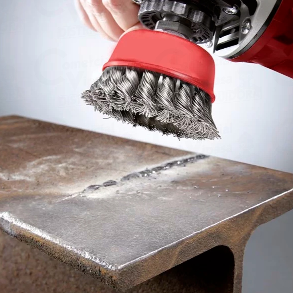 Escova De Aço Copo 3, 4, Ou 6Pol. Trançada Cerdas Duras Reforçada Industrial Até 8500 RPM Roca M14