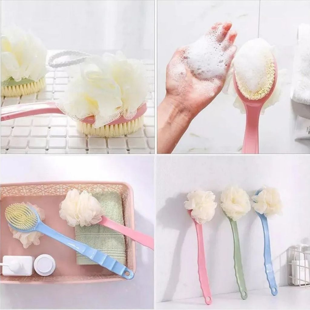 Escova de Banho 2 em 1 Cabo Longo Massageador Esfoliante Corporal Costas Pernas e Corpo Inteiro