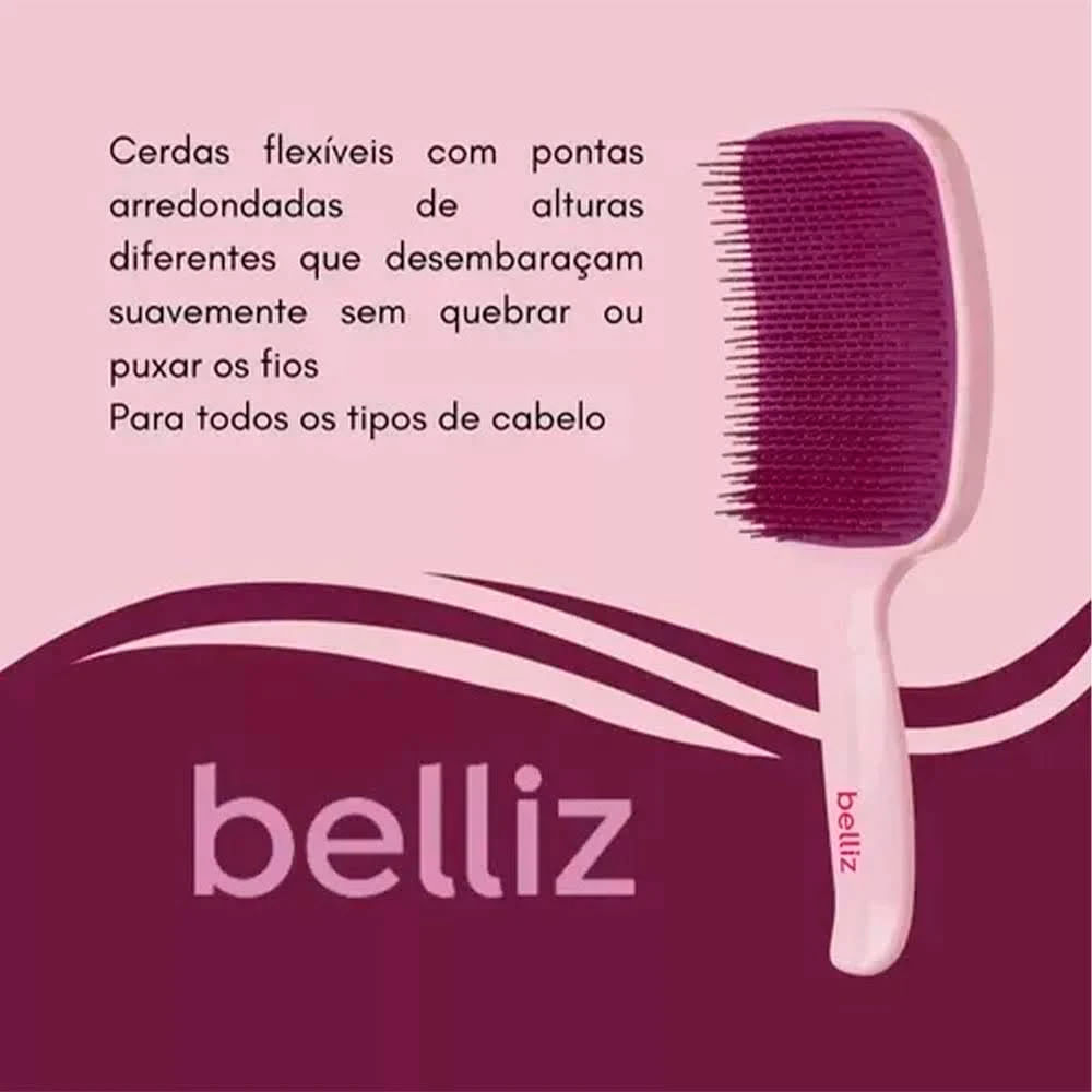 Escova De Cabelo Belliz Flex Raquete Rosa