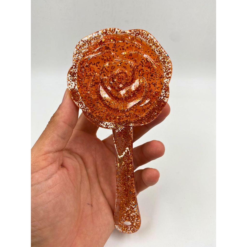 Escova de Cabelo Infantíl Flor Colorida com Glitter 17cm com Cerdas Arredondada