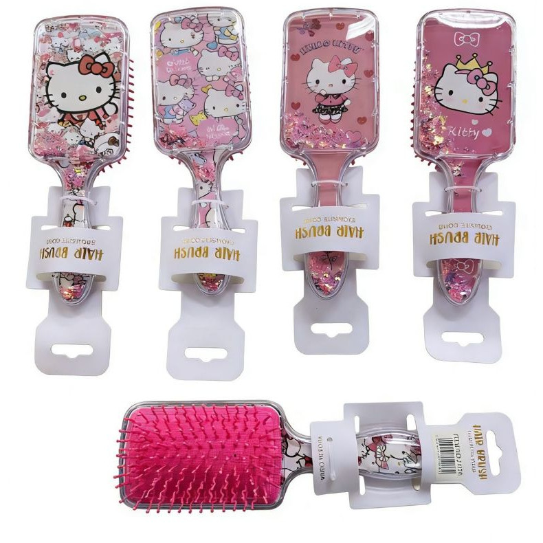 Escova de Cabelo Infantil Hello Kitty Transparente com Glitter Cerdas Onduladas 4 Modelos Sortidos