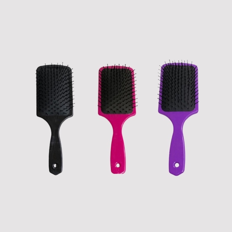 Escova De Cabelo Quadrada Almofadada Escobel Desembaraçante A Escova Quadrada Almofadada escobel é ótima para massagear o couro cabeludo, desembaraçar e alisar o cabelo naturalmente liso. A almofada de borracha cheia de ar é projetada para dobrar ao tocar o seu couro cabeludo para minimizar os danos ao pentear. para todos os tipos de cabelos. Características principais Marca: Escobel Modelo: quadrada almofadada Tipo de escova: cabelo Diâmetro da escova: 10 cm Outras características Material das cerdas: Plástico Material do corpo: Plástico e com Almofada Material do punho: Plástico É térmico: Não Quantidade de escovas: 1 será mandado cores disponíveis em estoque